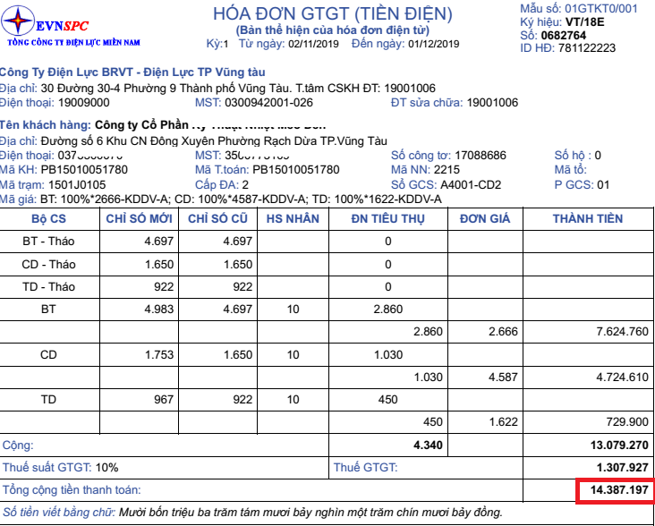 Hóa đơn trước khi lắp ĐMT