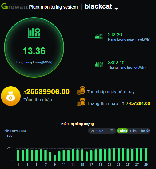 Phần mềm theo dõi sản lượng điện từ hệ thống – Growatt inverter 20kW